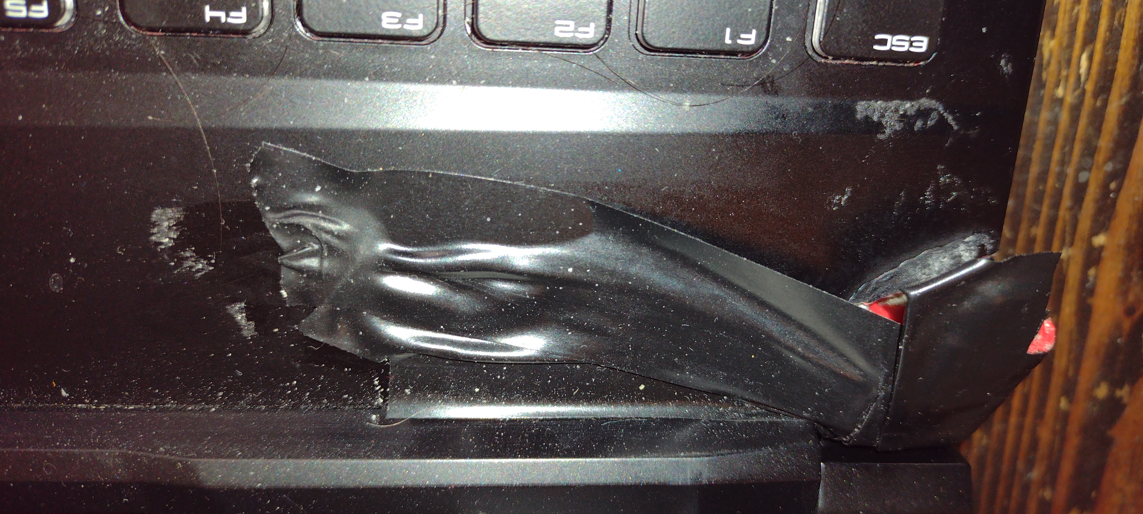 I tried using electrical tape to keep it from cracking any further. This did not work to well; when the laptop heated up the tape became plyable and failed to adhere to the plastic.
