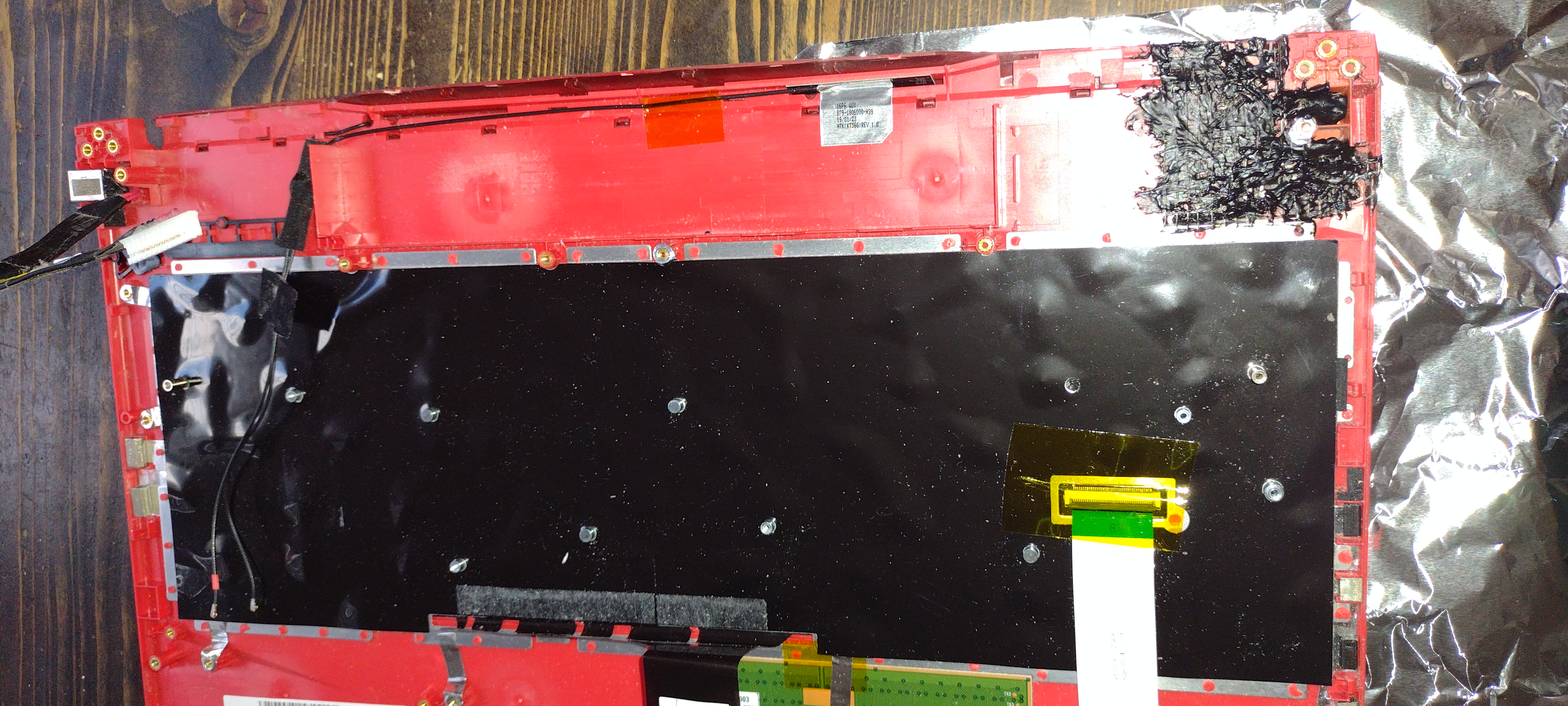 I had plan to replace the Palmrest, but after removing the system board, I discovered that I would not be able to remove the touch pad without damaging it. After unsuccesfully searching the web for a palmrest, with keyboard, and touchpad assembly included, I decided I would attempt to repair the damaged corner.